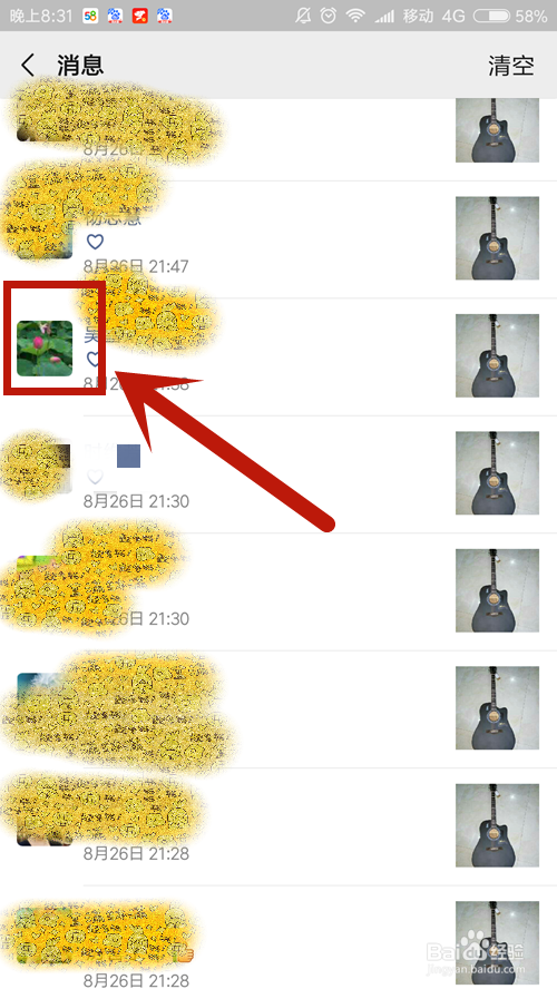 5、系统显示所有点赞信息,选择已经被删除的朋友的头像。