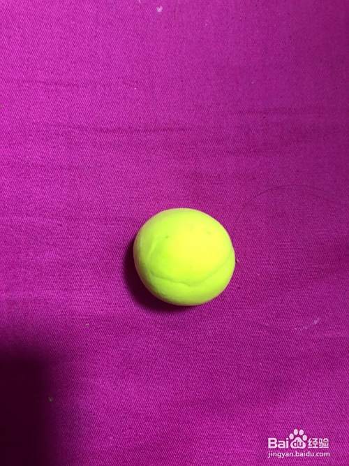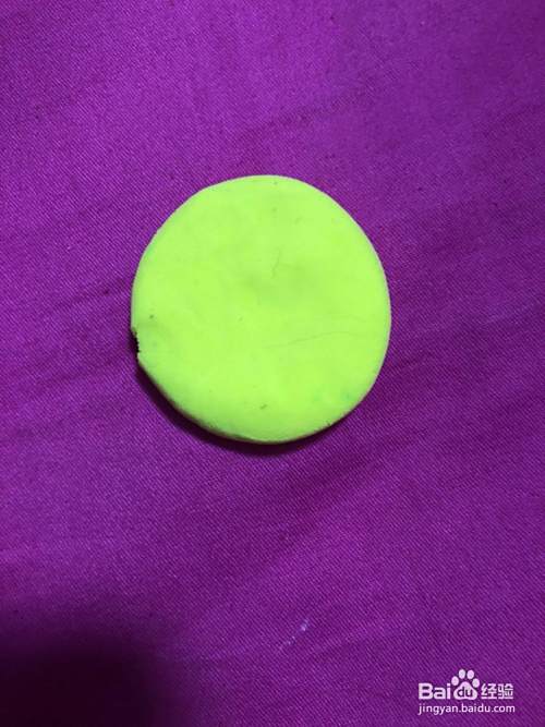拿出黄色的彩泥揉成圆形,按扁,在拿出黄色的彩泥揉成半圆形,一连接。