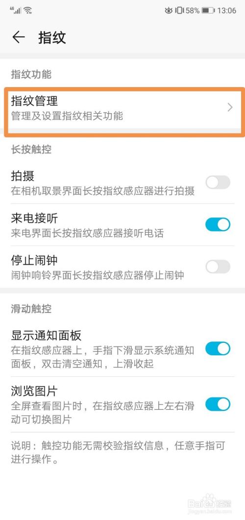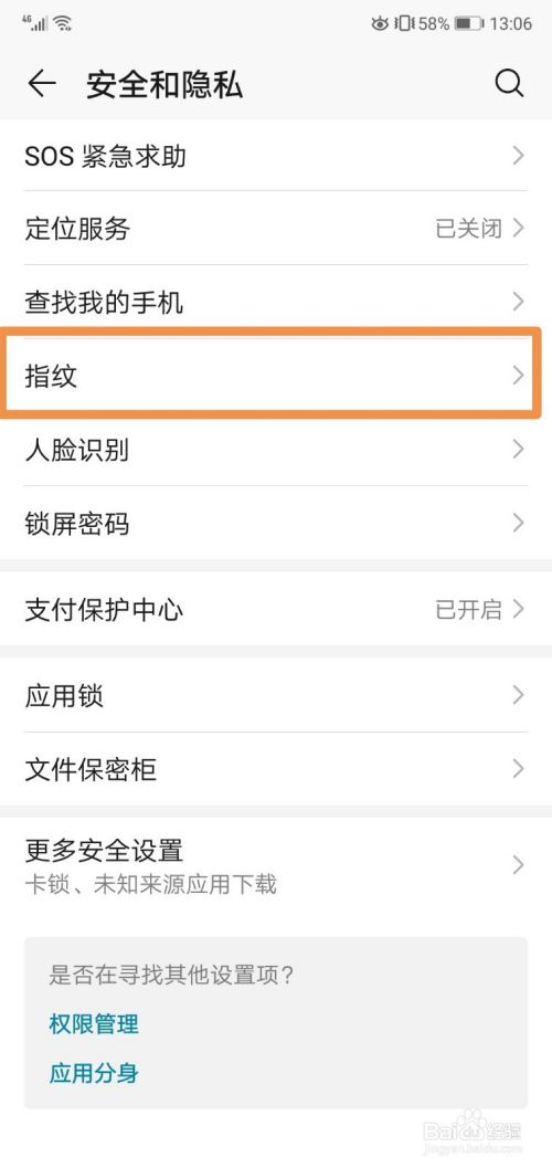在安全与隐私里面,我们点这里的指纹管理。
