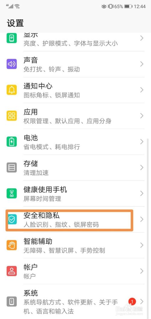 打开设置之后,点击安全与隐私。