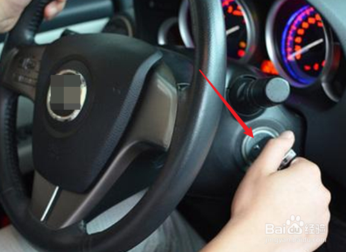 插入车钥匙,然后转动钥匙打火启动车辆。