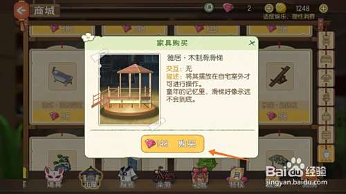 接着点击右侧的最后一个图标,选择列表中的雅居-木质滑滑梯,支付148钻石即可取得雅居-木质滑滑梯。