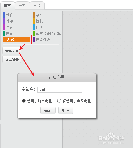 在数据脚本取点击新建变量,在输入一个变量名,默认使用于所有角色,然后点确定