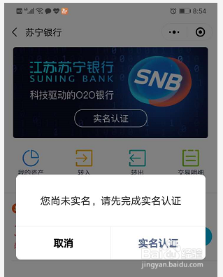 打开微信——搜索“苏宁银行”点击左下角我的银行