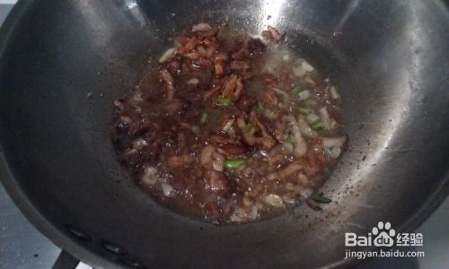 炒锅放花生油,等油三成热时,将切好的猪肉丝入锅,炒至变色发白,再将葱姜蒜入锅,加盐,味极鲜酱油煸香翻炒至熟。