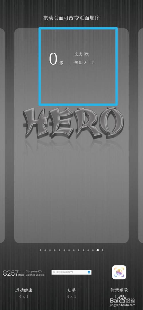 接下来,我们要将这个小工具拖动到界面上,如图所示,你之后就可以通过这个小工具知道你一天行走的步数了。