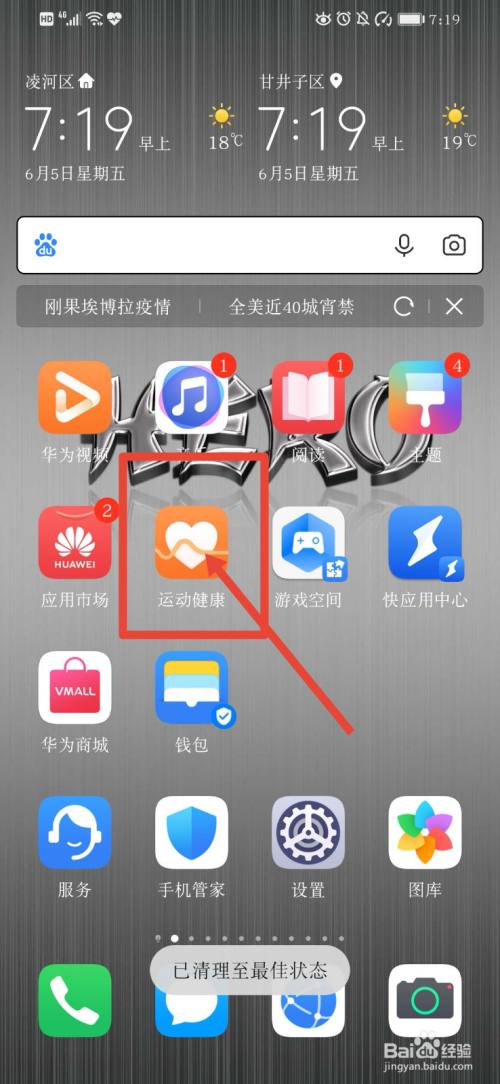 首先我们要打开华为手机自带的“运动健康”app,并点击,然后稍等片刻。