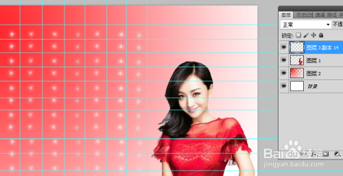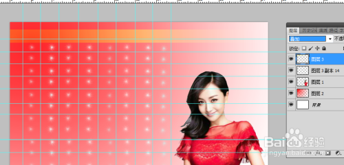 新建图层后,进行红色径向渐变,左上角拉到右下角。