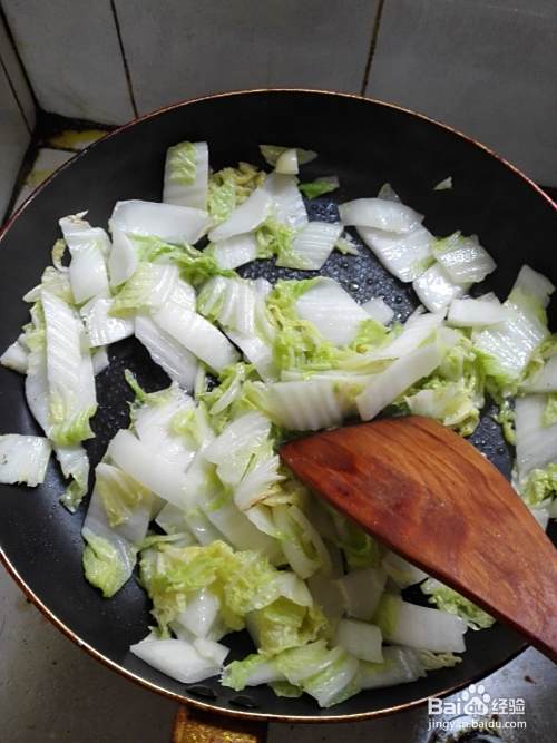迅速翻炒一会,让大白菜的味料混合均匀;
