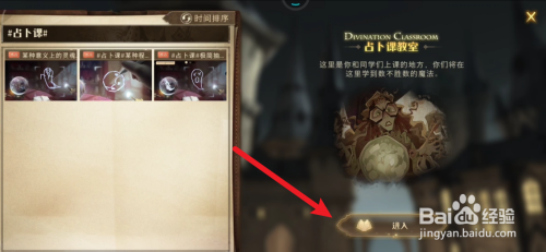 进入哈利波特魔法觉醒主界面里,点击如图的占卜课教室。