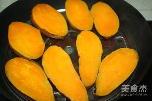 将蒸熟的红薯取出,放在晾网上,晾至温热。