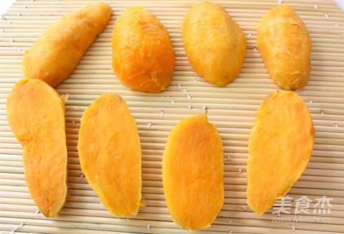 把红薯扒光光,去掉纤维较多的部分,比如两头,继续晾至凉透。