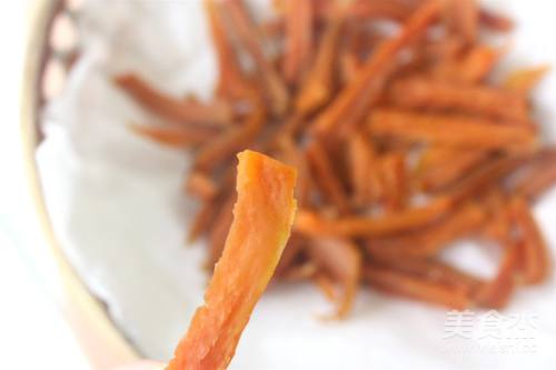 蒸到筷子刚刚能够扎透红薯即可,千万不要蒸得太软,否则很难切成条。