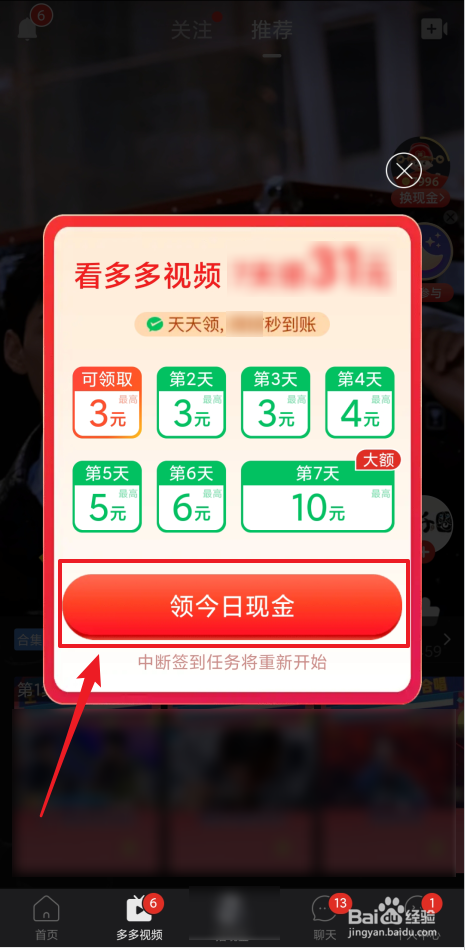 在拼多多多多视频每天都可以领取现金,具体如何快速领取今日现金,可参看下列操作方法。