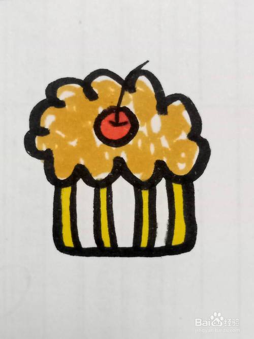 画小蛋糕上的条纹部分。
