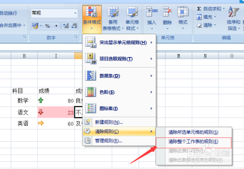 弹出了下一级菜单中进行选择为了清除所选单元格的规则。