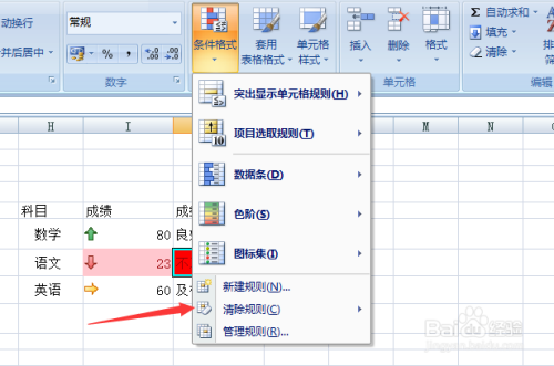 弹出了下拉菜单中,进行选择为清除规则的选项菜单。