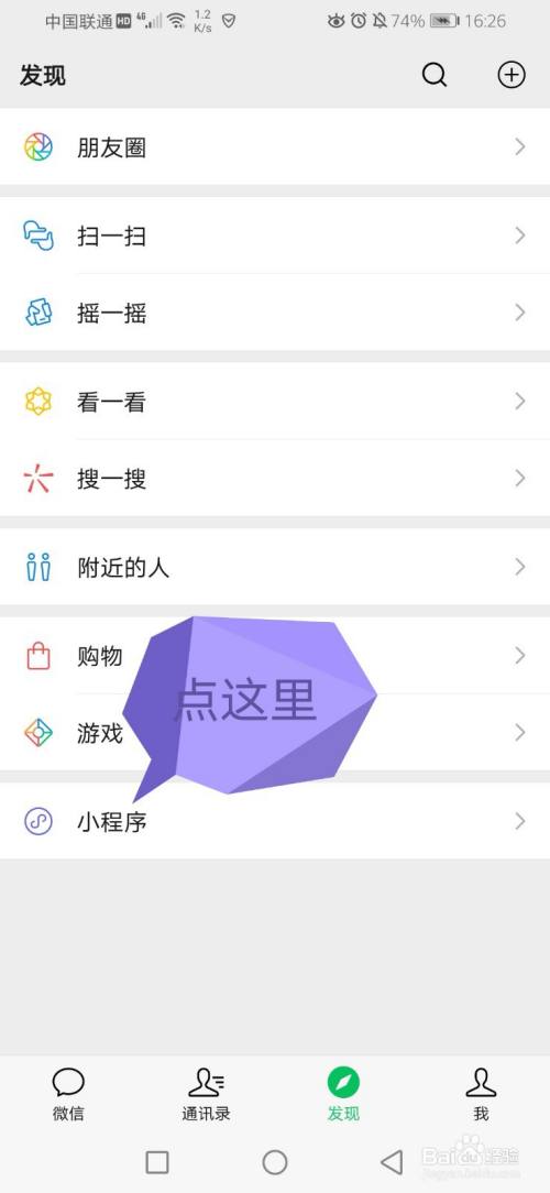 在发现页面找到小程序