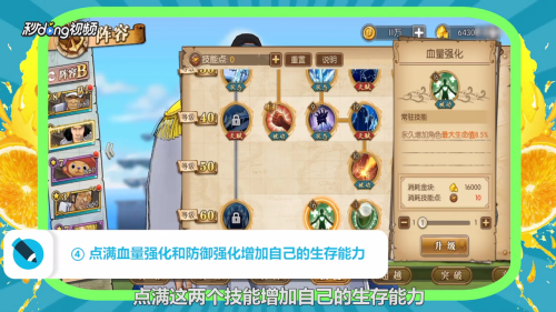 4最后点满血量强化和防御强化,青雉本身防御力不高,点满这两个技能增加自己的生存能力。