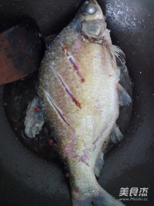 5将泡好的鱼上下割几道 为的是入味,但是不要太深,就可以下锅两面煎成微黄色。