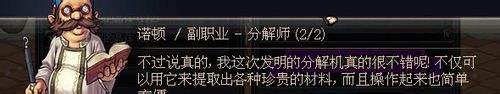 分解师是能够开设分解商店,拥有像诺顿一样分解技能的副职业。