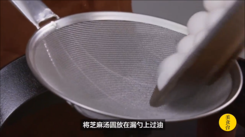 锅中烧油,六成热时,将汤圆放在漏勺上过油。