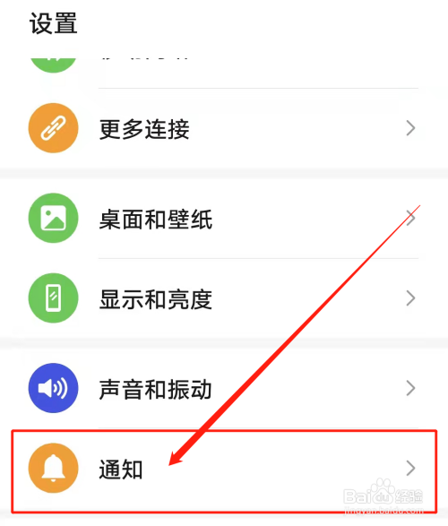 打开手机设置进入界面,选择通知点击进入。