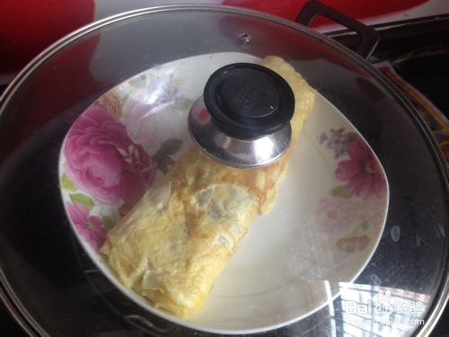 卷好的鸡蛋饼用手指按压瓷实了,就准备蒸。