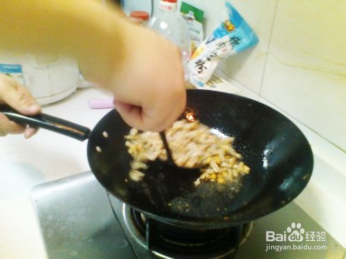 往锅里放油烧热,然后把姜放进去炒3分钟,把姜的味道融合到油里面,这样姜的味道就会更好地进入到鸭肠里面,祛除鸭肠的腥味。