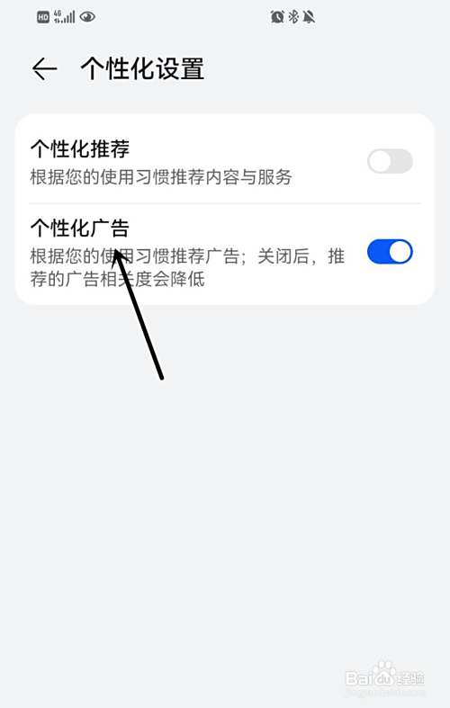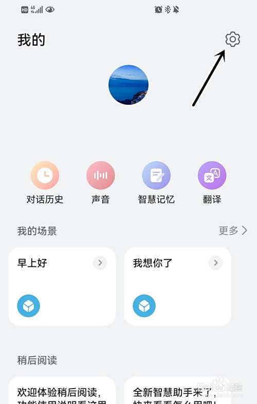 进入智慧助手中,我的页面点击设置图标,随后在菜单中找到个性化设置,打开个性化广告。