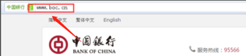 首先在浏览器网址栏输入中国银行的网址http://www.boc.cn/。