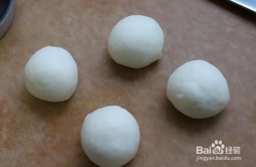 将发酵好的面团轻揉排气,然后分成四个小份,我今天做的是小披萨,所以把面团也分开了,其实做披萨麻油那么复杂,想做大的就用大面团,想吃小的就用小面团。
