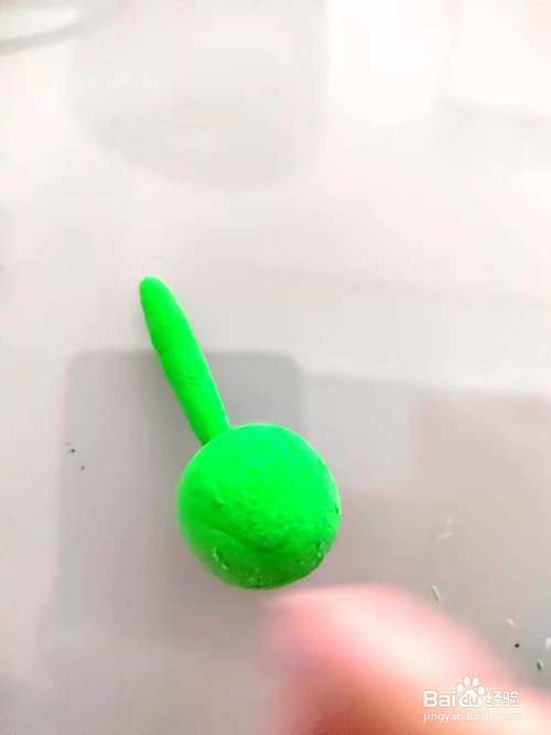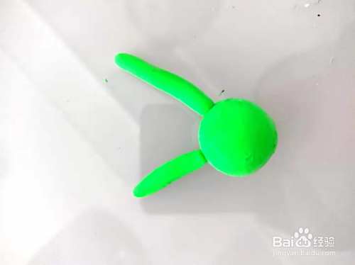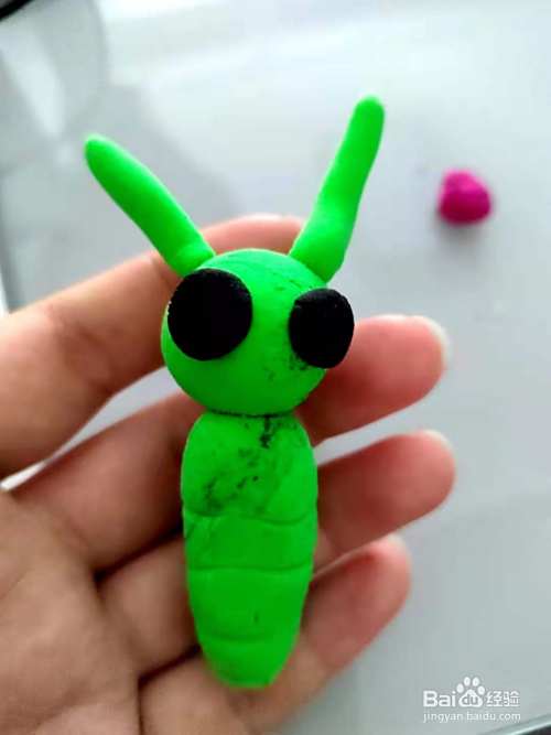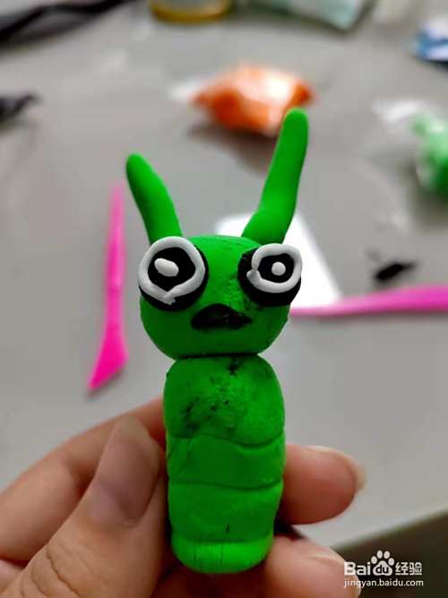 黑色轻黏土制作眼睛,绿色椭圆形作为身体。