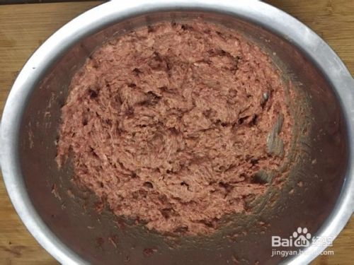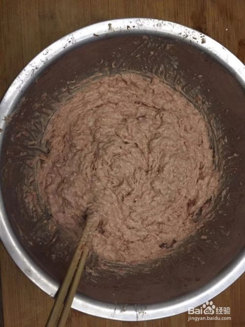 剁好的肉馅中加入胡椒粉3勺,黑胡椒3勺,五香粉3勺,十三香3勺,盐5勺,鸡精5勺,适量葱水,猪油3勺,葱油3勺,3个鸡蛋,不停地顺时针搅拌