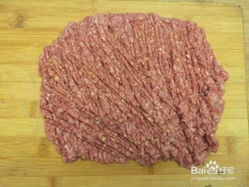 牛肉剁成肉末,加入姜末继续剁