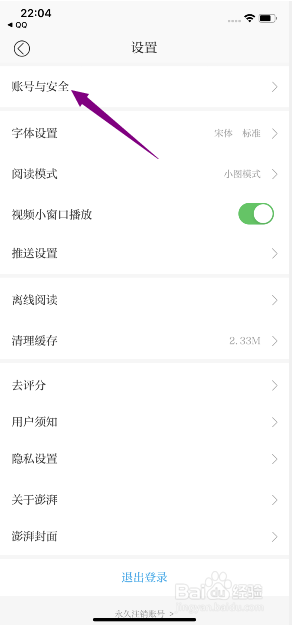 4、点击账号与安全。
