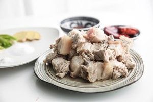锅中放水,水开后加入腌制好的五花肉,焯至断生,飘出浮沫后捞出。
