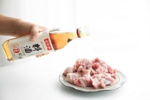 五花肉加入三勺老恒和零添加料酒冷藏腌制15分钟。