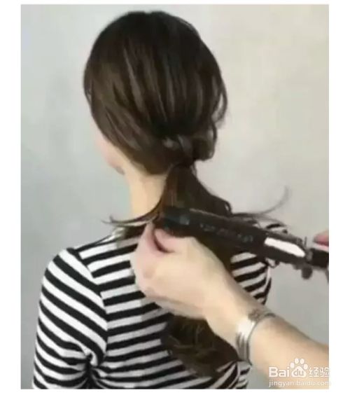 4、最后,将三股头发扎在一起,再适当的整理出蓬松感,美美的低马尾就完成了。