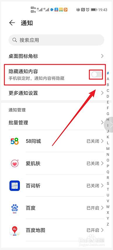 点击开启/关闭【隐藏通知内容】,即可实现锁屏状态下,通知内容显示或者隐藏了