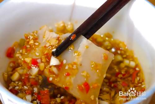 切点葱花,加入一勺白芝麻,然后浇上热油,激发出香味,料汁就做好了