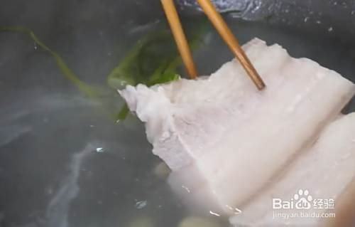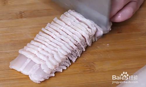 洗干净后切成厚厚的薄片,锅中水烧开,放入五花肉,盖上盖子蒸25分钟