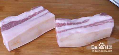 准备一斤五花肉,把猪皮烧一下,这样可以去除猪毛和猪皮的异味,然后放入清水中清洗干净