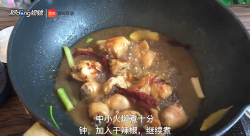 中小火焖煮十分钟,加入干辣椒继续煮。