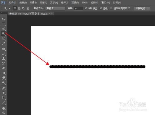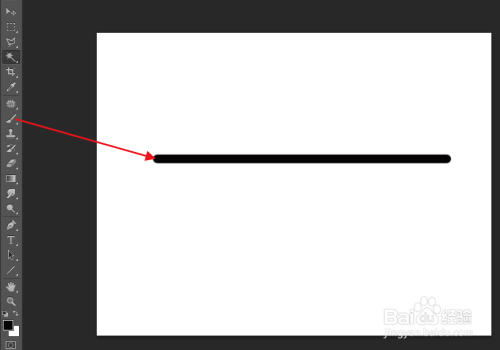 打开Photoshop ,用画笔在画布上画一条线,作为演示对象。