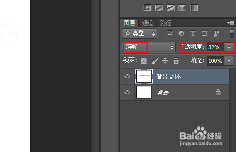现在将图层面板的模式调整为“溶解”。然后降低不透明度。线条就变成颗粒状线条了。