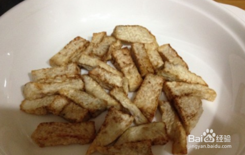 把炸好的芋头铺在盘底