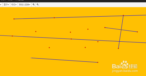 在使用线段工具,在绘图区域画出两个相交的两个线段出来。