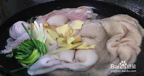 热锅下油,下入羊肚,倒入料汁和清水,盖上锅盖,小火焖煮30分钟左右。