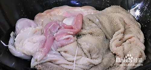 把毛肚清洗干净,再用盐抓洗5分钟左右,用清多冲洗几遍冲洗干净。